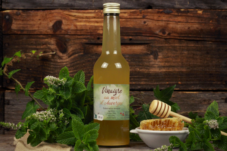 Ingrédients : Vinaigre (78%), miel (20%), menthe fraîche.